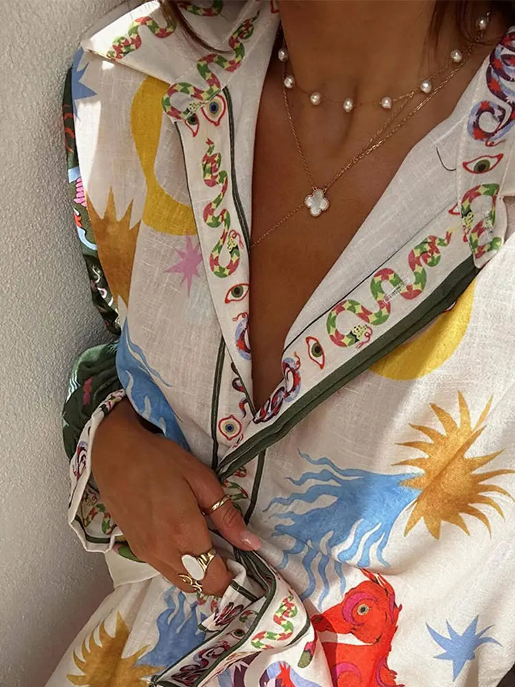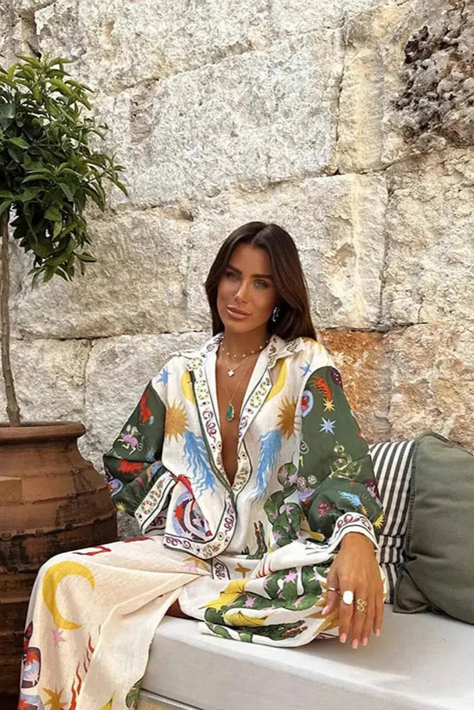 Su estampado onírico y su silueta desenfadada lo convierten en la opción ideal para mañanas bañadas por el sol, tardes descalzas y noches de verano tranquilas.